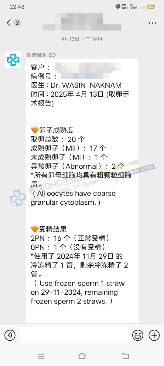 34歲客戶國內試管失敗,求助DHC后,一促雖取卵11個但因卵子質量差,養囊少,經過3個月從營養均衡到個性化調理后,二促取卵20個? ,受精16個?,養囊13個?。