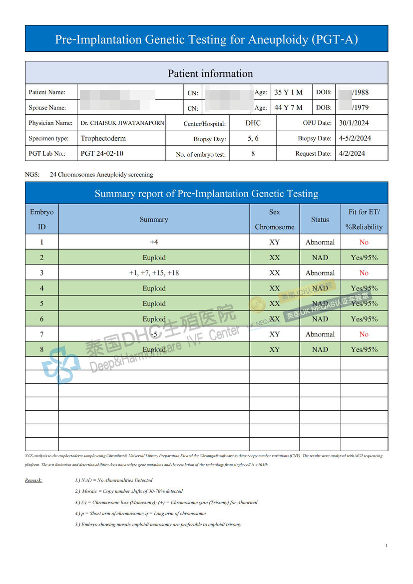 多囊客戶一促8囊胚,二促9囊胚,共斬獲4男6女共10枚優質可移植胚胎