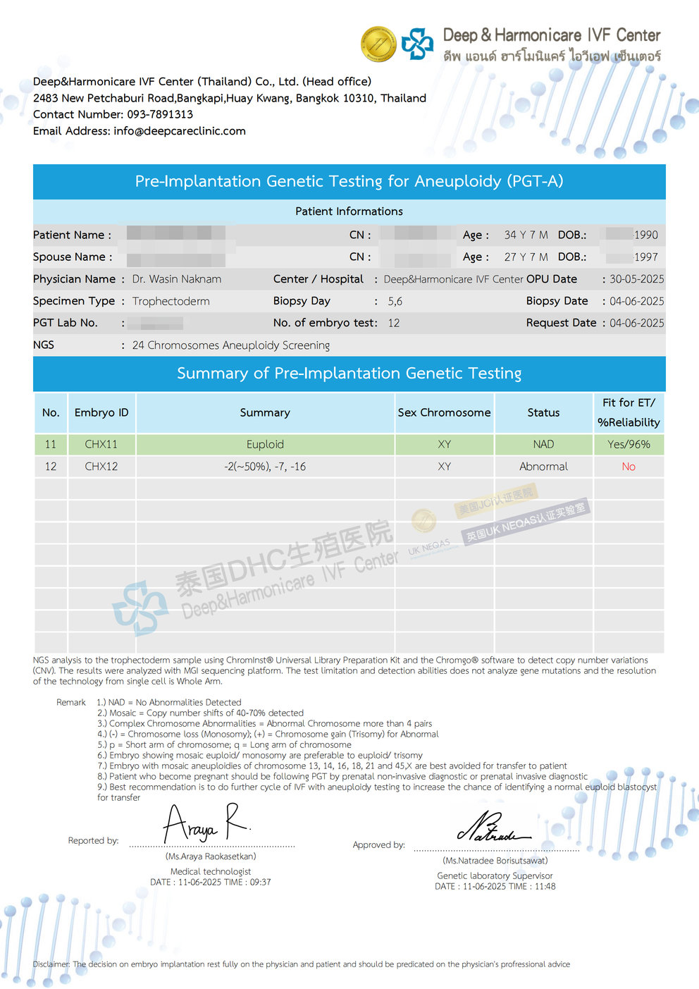 客戶國內(nèi)試管失敗,在萬星博士方案下取卵26,經(jīng)實(shí)驗(yàn)室"卵子救援"行動,助力未成熟卵晚期受精,終于收獲23枚受精卵,并過篩4男2女健康胚胎,恭喜客戶兒女雙全~