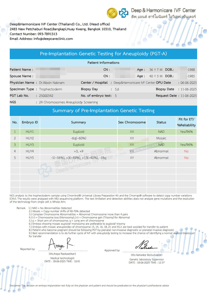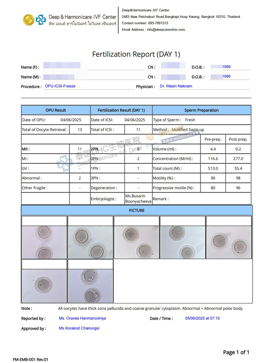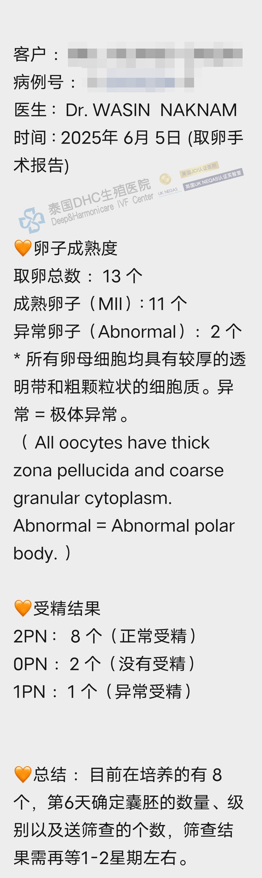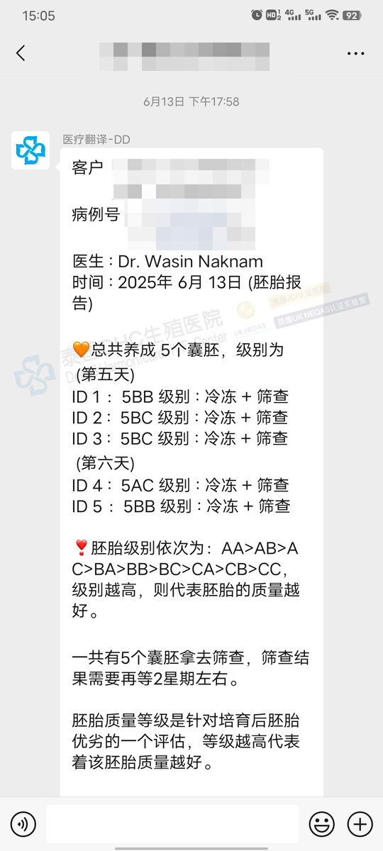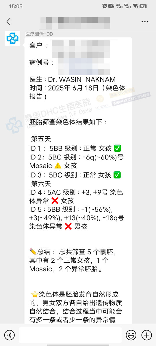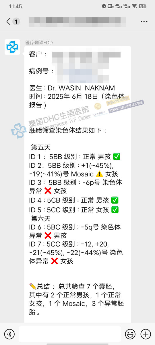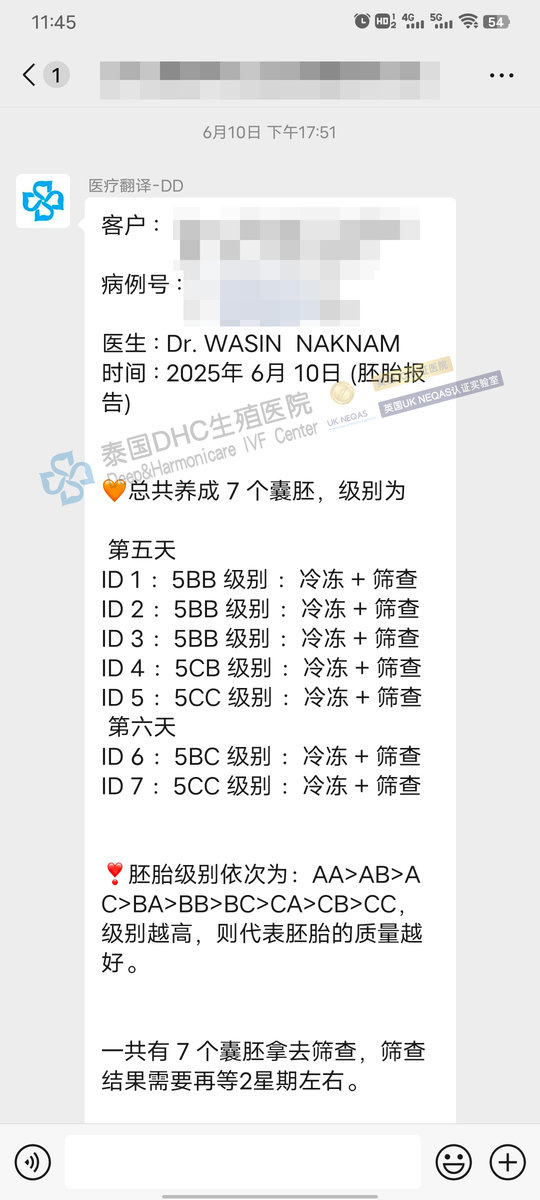 客戶7成熟卵→7受精→5囊胚→喜提2枚優(yōu)質(zhì)女胚
