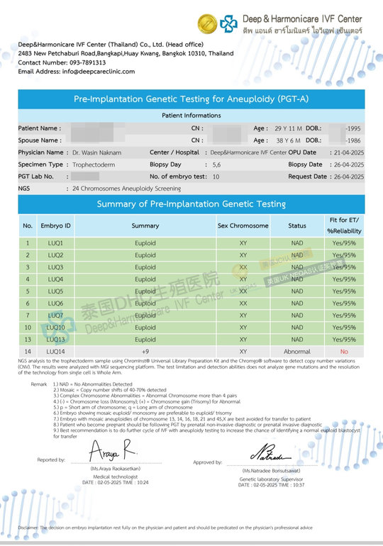 萬星博士方案下,30卵→29受精→20囊胚→挑選10個胚胎送篩,喜提6男3女健康胚胎