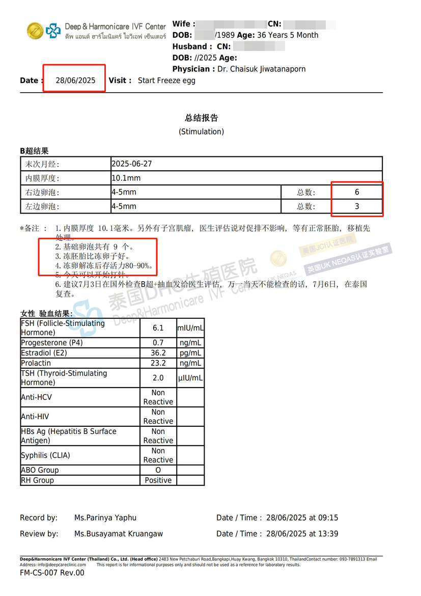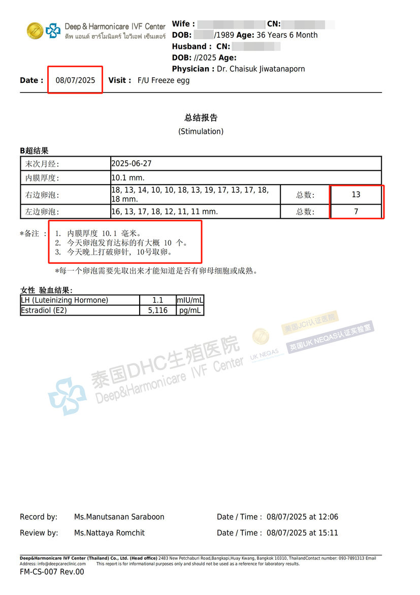 基礎卵泡9→經(jīng)查雅思博士方案→發(fā)育20→取卵16→冷凍13枚黃金卵子