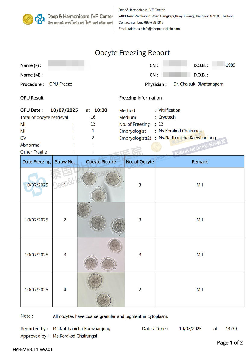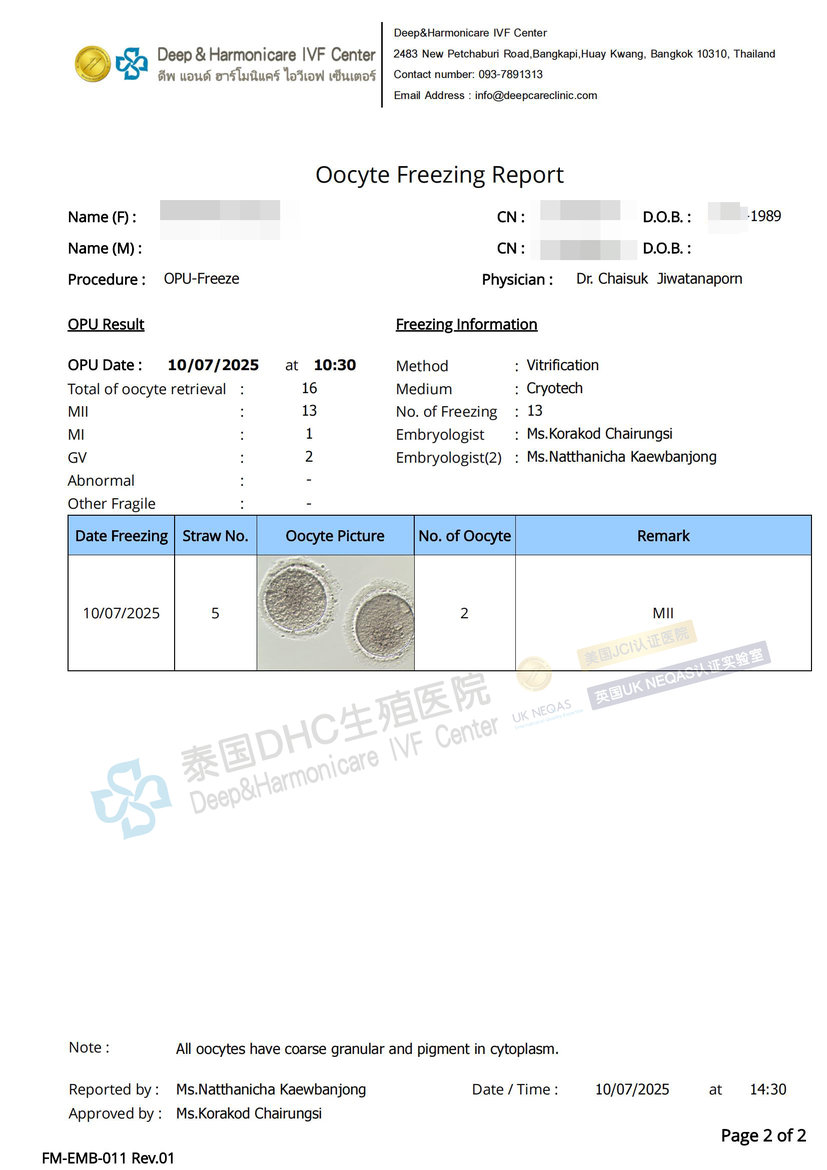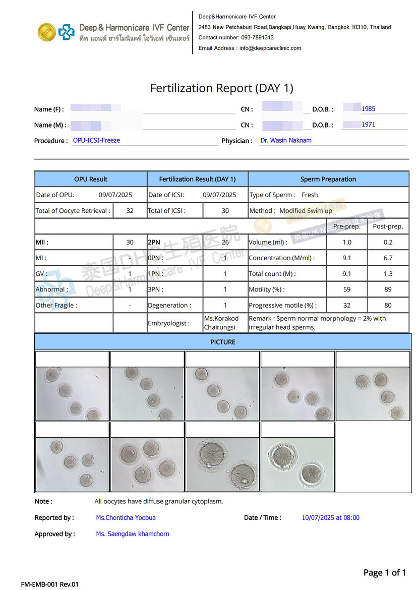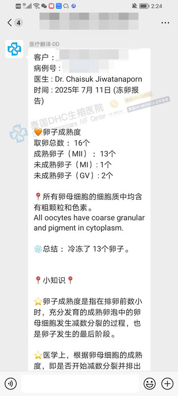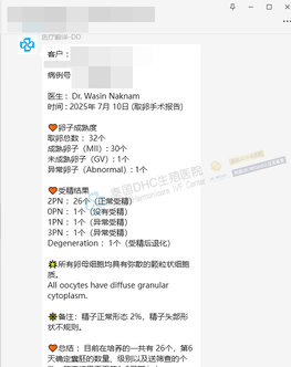 客戶國內(nèi)無可用胚胎,求助DHC進行試管前調(diào)理后,取32卵,得26枚優(yōu)質(zhì)受精卵