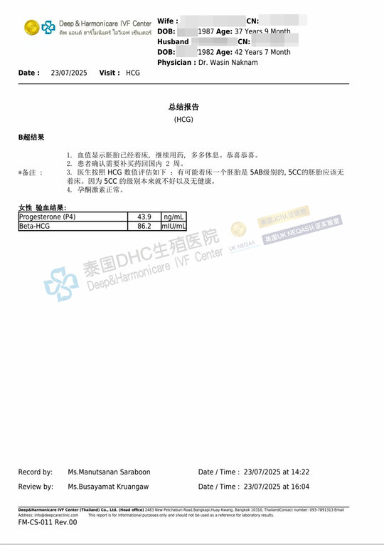 在泰國DHC生殖醫院,成功的篇章由不同的故事譜寫。它可能是一次實驗室技術的重大突破,可能是一次多學科專家聯合助力的成果,也可能是一份水到渠成的雙倍喜悅。今天,我們為您呈上三則最新的好孕捷報,每一則都獨立精彩,共同構筑起DHC值得信賴的專業形象。