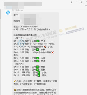 斐然成績: 一位客戶將她的 10枚囊胚 送往進行**第三代試管嬰兒(PGT-A)**遺傳學篩查,最終竟有 8枚順利通過,其中包含5枚男胚和3枚女胚。