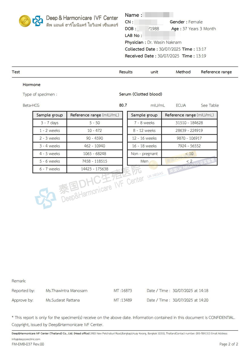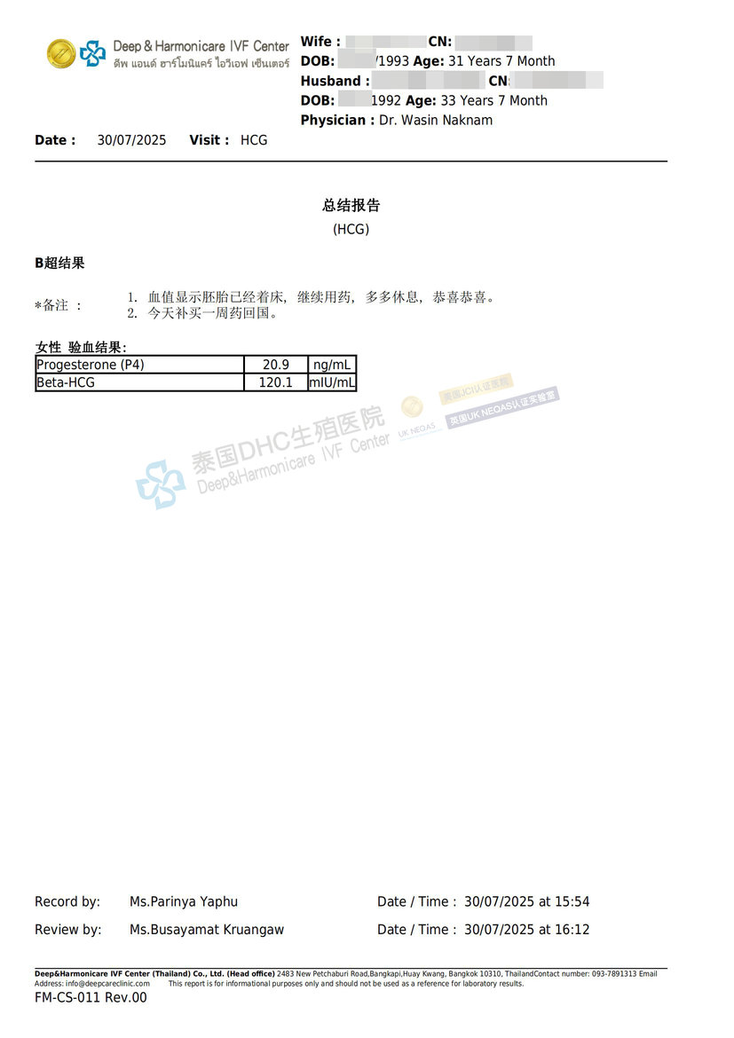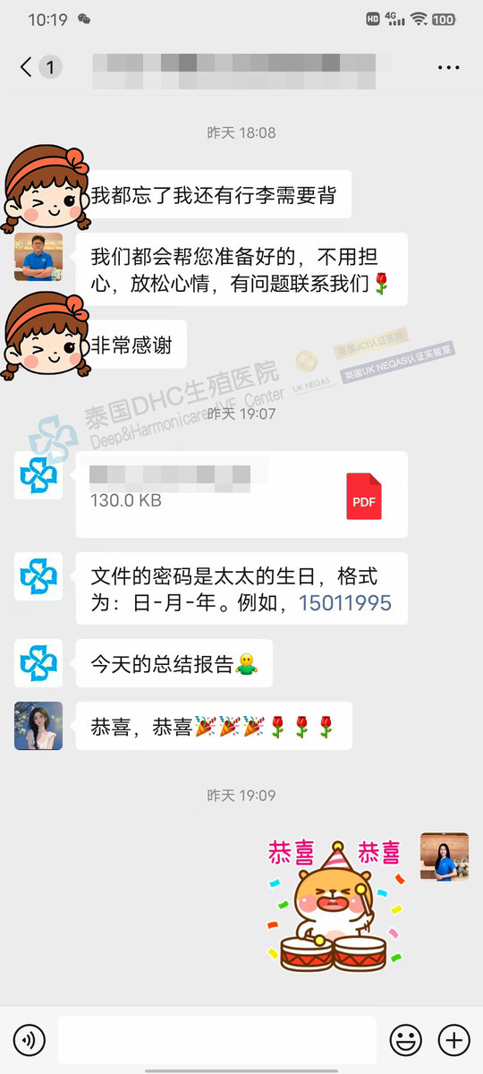 承諾守護: 我們的服務并未止步于驗孕。客戶回國后,DHC的**“中泰一體化”**服務團隊將繼續跟進她的孕期情況,提供專業咨詢與指導,持續守護,直至客戶安全分娩。