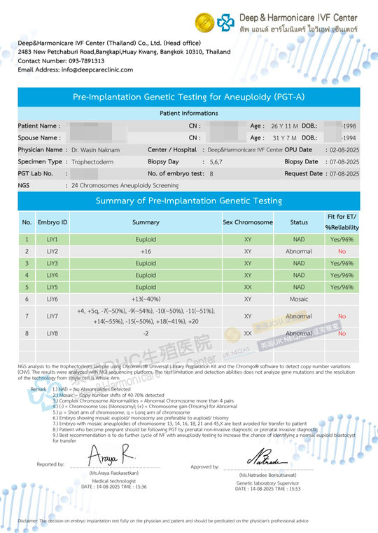 喜人成果: 7枚卵子解凍后,成功培育出3枚囊胚,并通過PGT-A篩查,喜獲 2枚寶貴的優(yōu)質(zhì)男胚 待移植!